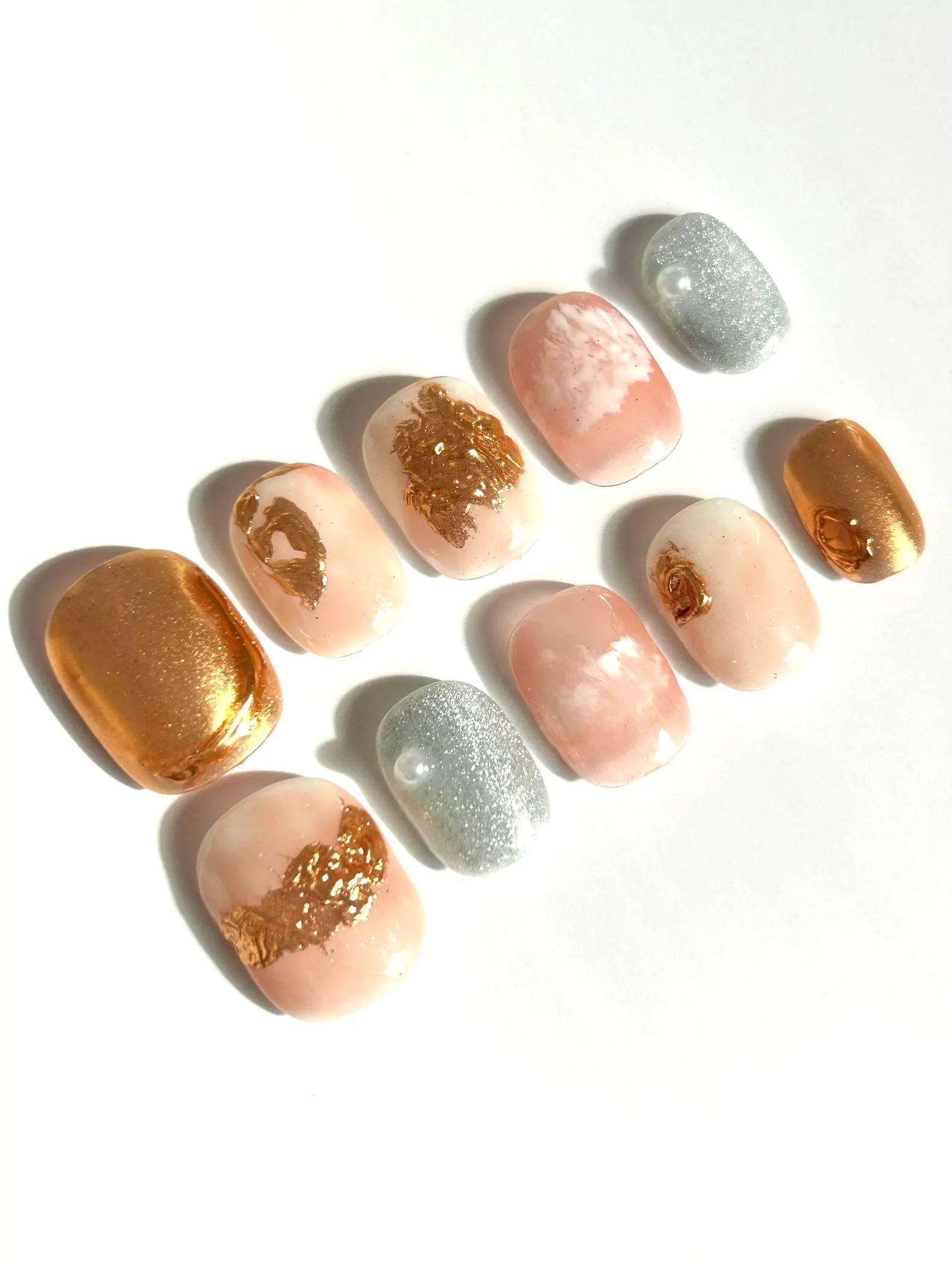 • Pearl white nails with subtle swirls
