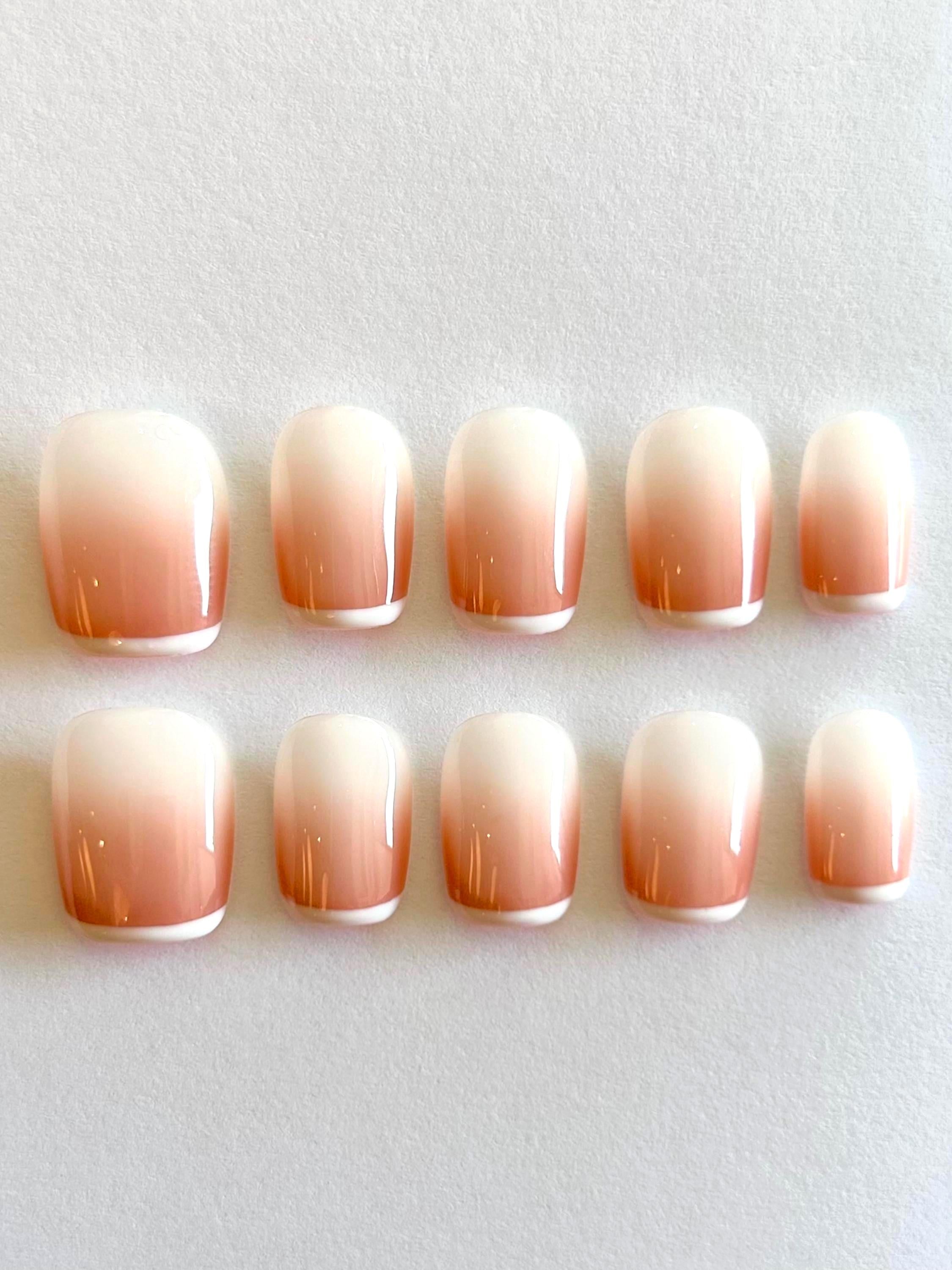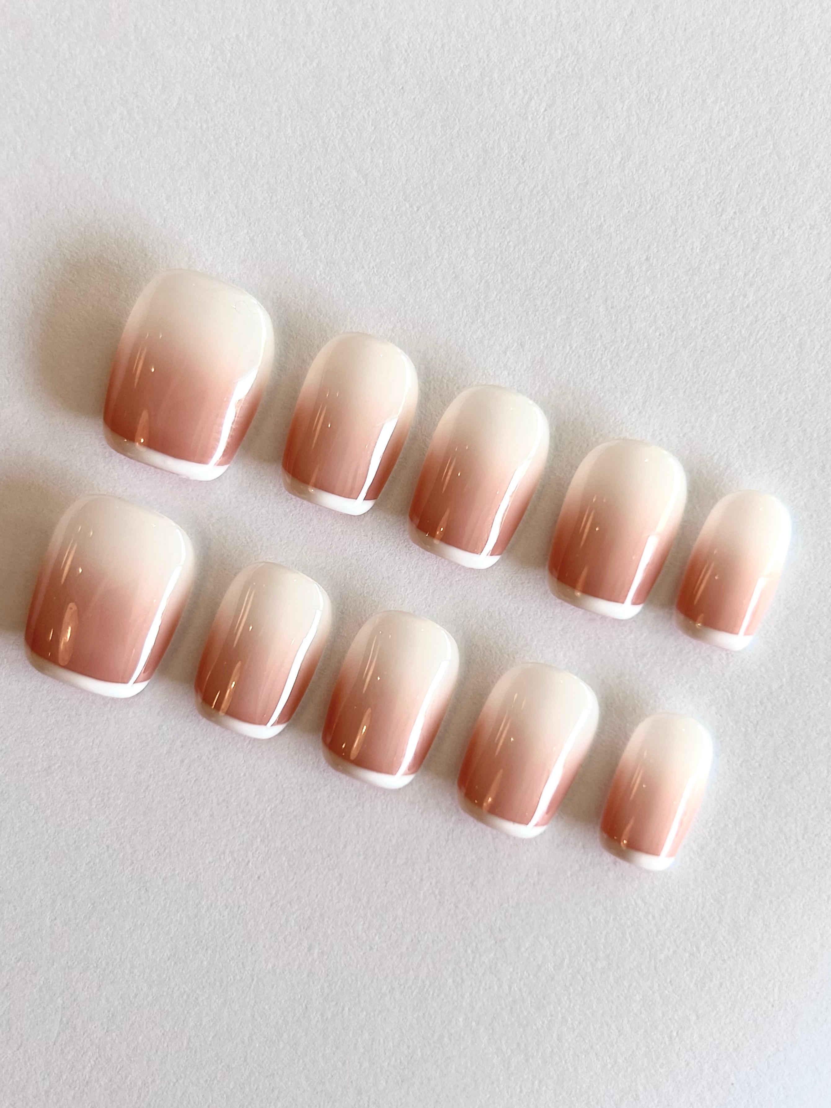 ombre nails, nude press on nails, French tip nails, reusable gel nails, bridal nails, everyday nails, square press on nails